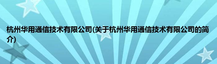 本文关于杭州华用通信技术有限公司的简介就讲解完毕,希望对大家有所帮助。