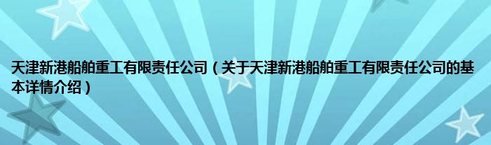 本文关于天津新港船舶重工有限责任公司的基本详情介绍就讲解完毕,希望对大家有所帮助。