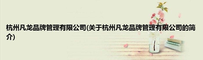 本文关于杭州凡龙品牌管理有限公司的简介就讲解完毕,希望对大家有所帮助。