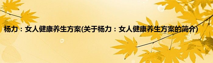 本文关于杨力:女人健康养生方案的简介就讲解完毕,希望对大家有所帮助。