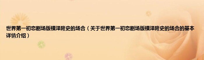 本文关于世界第一初恋剧场版横泽隆史的场合的基本详情介绍就讲解完毕,希望对大家有所帮助。