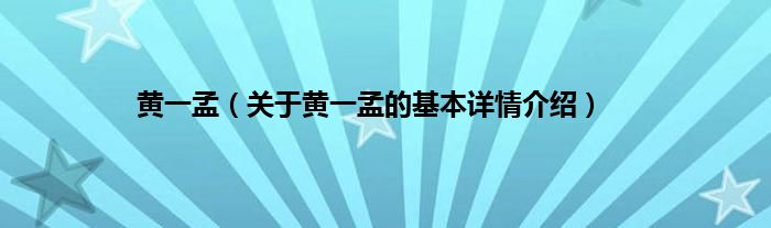 本文关于黄一孟的基本详情介绍就讲解完毕,希望对大家有所帮助。