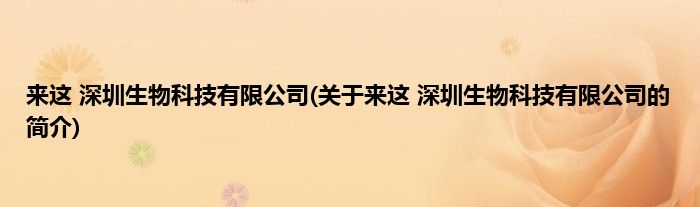 本文关于来这 深圳生物科技有限公司的简介就讲解完毕,希望对大家有所帮助。