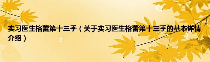 本文关于实习医生格蕾第十三季的基本详情介绍就讲解完毕,希望对大家有所帮助。