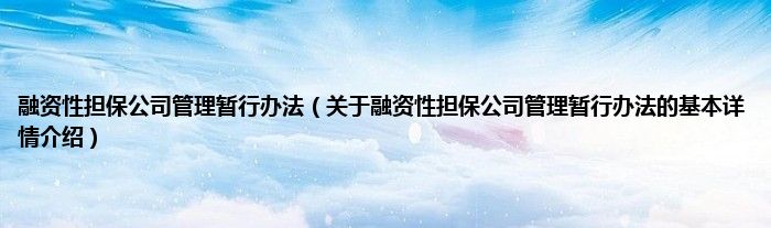 本文关于融资性担保公司管理暂行办法的基本详情介绍就讲解完毕,希望对大家有所帮助。