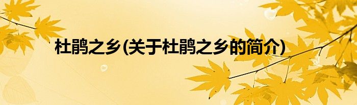 本文关于杜鹃之乡的简介就讲解完毕,希望对大家有所帮助。