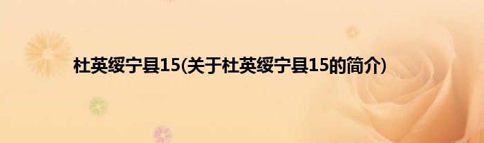 大家好,杜英绥宁县15,关于杜英绥宁县15的简介很多人还不知道,现在让我们一起来看看吧!