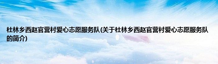 本文关于杜林乡西赵官营村爱心志愿服务队的简介就讲解完毕,希望对大家有所帮助。
