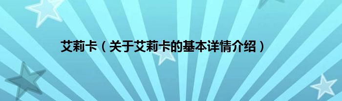 本文关于艾莉卡的基本详情介绍就讲解完毕,希望对大家有所帮助。