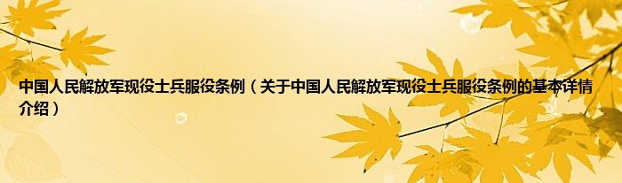 本文关于中国人民解放军现役士兵服役条例的基本详情介绍就讲解完毕,希望对大家有所帮助。