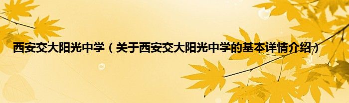 本文关于西安交大阳光中学的基本详情介绍就讲解完毕,希望对大家有所帮助。