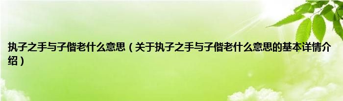 本文关于执子之手与子偕老什么意思的基本详情介绍就讲解完毕,希望对大家有所帮助。