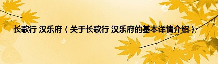 本文关于长歌行 汉乐府的基本详情介绍就讲解完毕,希望对大家有所帮助。