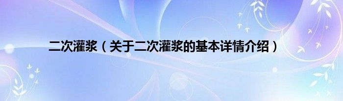本文关于二次灌浆的基本详情介绍就讲解完毕,希望对大家有所帮助。