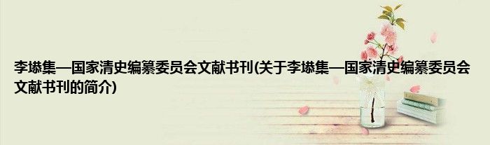 本文关于李塨集—国家清史编纂委员会文献书刊的简介就讲解完毕,希望对大家有所帮助。