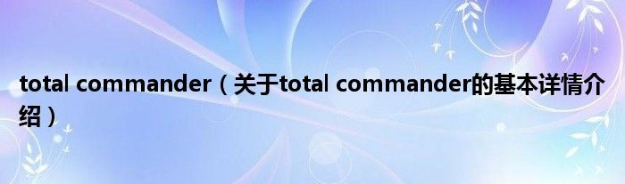 本文关于total commander的基本详情介绍就讲解完毕,希望对大家有所帮助。