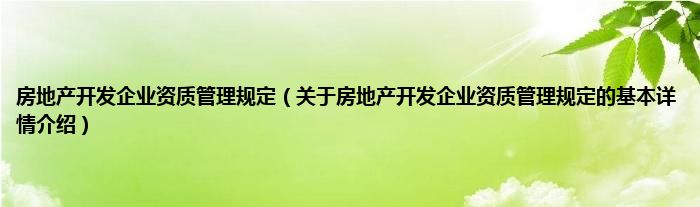 本文关于房地产开发企业资质管理规定的基本详情介绍就讲解完毕,希望对大家有所帮助。