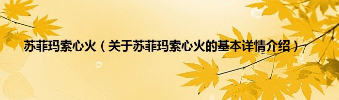 本文关于苏菲玛索心火的基本详情介绍就讲解完毕,希望对大家有所帮助。