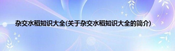 本文关于杂交水稻知识大全的简介就讲解完毕,希望对大家有所帮助。