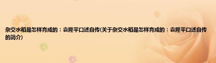 本文关于杂交水稻是怎样育成的:袁隆平口述自传的简介就讲解完毕,希望对大家有所帮助。