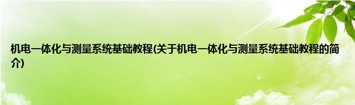 本文关于机电一体化与测量系统基础教程的简介就讲解完毕,希望对大家有所帮助。
