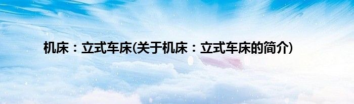 大家好,机床:立式车床,关于机床:立式车床的简介很多人还不知道,现在让我们一起来看看吧!