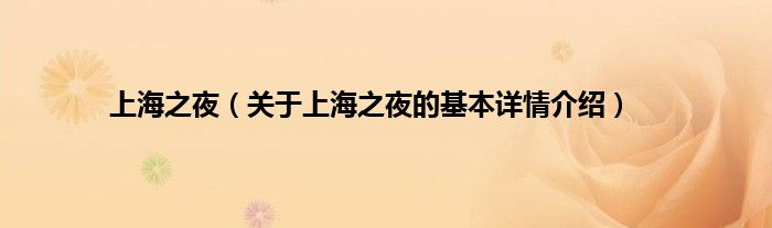 本文关于上海之夜的基本详情介绍就讲解完毕,希望对大家有所帮助。