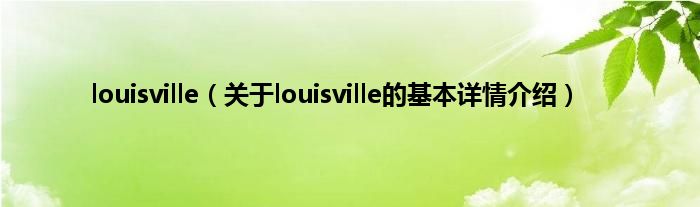 本文关于louisville的基本详情介绍就讲解完毕,希望对大家有所帮助。
