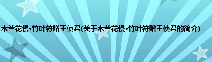 大家好,木兰花慢·竹叶符赠王使君,关于木兰花慢·竹叶符赠王使君的简介很多人还不知道,现在让我们一起来看看吧!