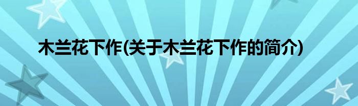 大家好,木兰花下作,关于木兰花下作的简介很多人还不知道,现在让我们一起来看看吧!