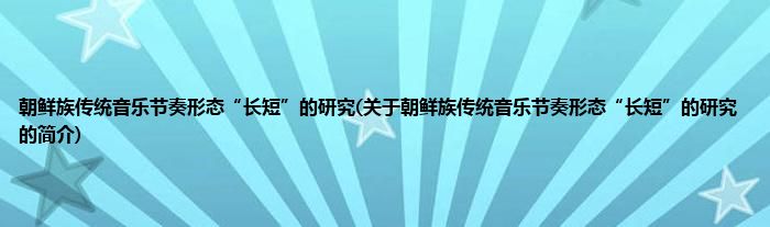 2、《朝鲜族传统音乐节奏形态"长短"的研究》是对朝鲜族典型节奏形态“长短”较为全面的总结研究,具有一定的学术价值。