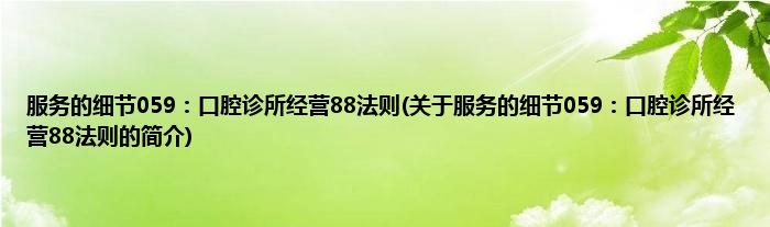 本文关于服务的细节059:口腔诊所经营88法则的简介就讲解完毕,希望对大家有所帮助。
