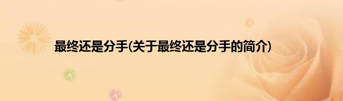 大家好,最终还是分手,关于最终还是分手的简介很多人还不知道,现在让我们一起来看看吧!
