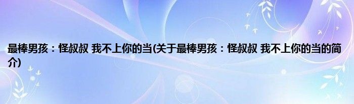 大家好,最棒男孩:怪叔叔,我不上你的当,关于最棒男孩:怪叔叔,我不上你的当的简介很多人还不知道,现在让我们一起来看看吧!