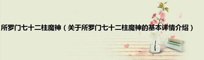 本文关于所罗门七十二柱魔神的基本详情介绍就讲解完毕,希望对大家有所帮助。