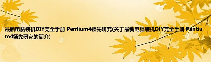 本文关于最新电脑装机DIY完全手册 Pentium4领先研究的简介就讲解完毕,希望对大家有所帮助。