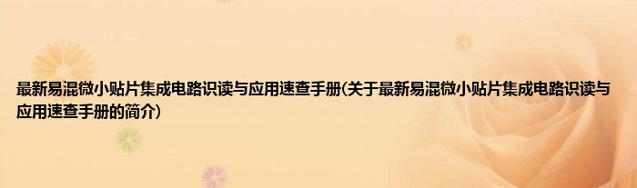 最新易混微小贴片集成电路识读与应用速查手册(关于最新易混微小贴片集成电路识读与应用速查手册的简介)