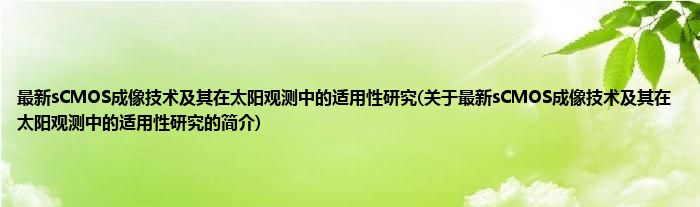 本文关于最新sCMOS成像技术及其在太阳观测中的适用性研究的简介就讲解完毕,希望对大家有所帮助。