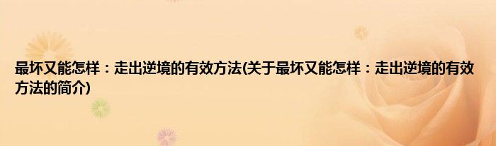 本文关于最坏又能怎样:走出逆境的有效方法的简介就讲解完毕,希望对大家有所帮助。
