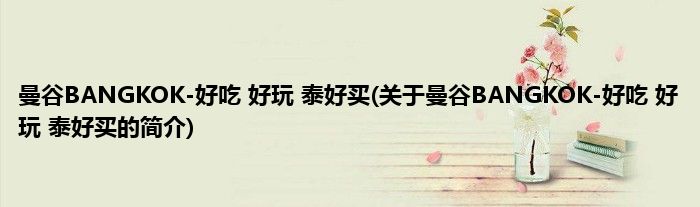 本文关于曼谷BANGKOK-好吃,好玩,泰好买的简介就讲解完毕,希望对大家有所帮助。