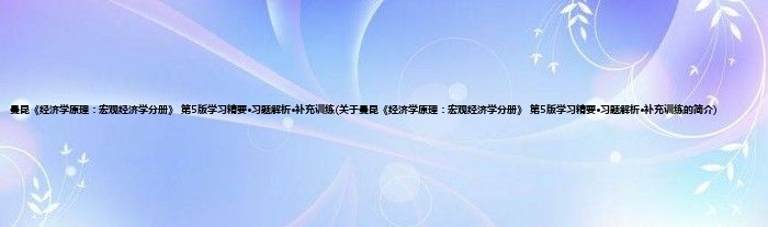 本文关于曼昆《经济学原理:宏观经济学分册》 第5版学习精要·习题解析·补充训练的简介就讲解完毕,希望对大家有所帮助。
