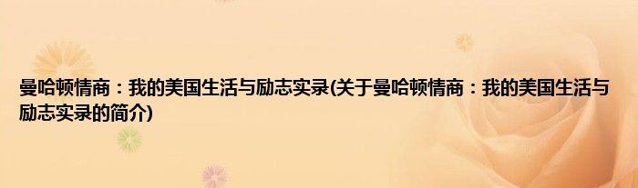 曼哈顿情商:我的美国生活与励志实录(关于曼哈顿情商:我的美国生活与励志实录的简介)