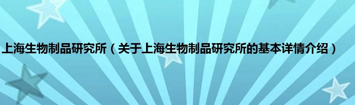 本文关于上海生物制品研究所的基本详情介绍就讲解完毕,希望对大家有所帮助。