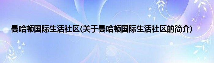 大家好,曼哈顿国际生活社区,关于曼哈顿国际生活社区的简介很多人还不知道,现在让我们一起来看看吧!