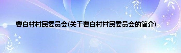 本文关于曹白村村民委员会的简介就讲解完毕,希望对大家有所帮助。