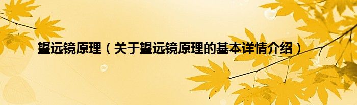 本文关于望远镜原理的基本详情介绍就讲解完毕,希望对大家有所帮助。