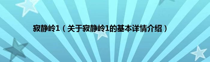 大家好我是小蝌蚪,寂静岭1,关于寂静岭1的基本详情介绍很多人还不知道,那么现在让我们一起来看看吧!