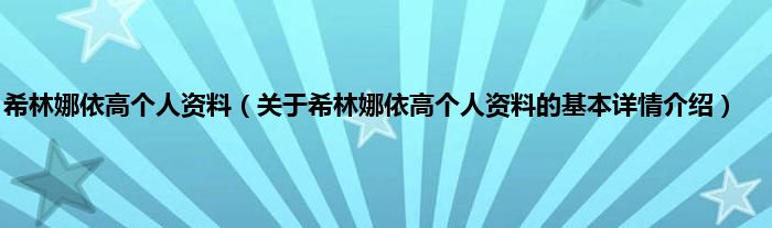 本文关于希林娜依高个人资料的基本详情介绍就讲解完毕,希望对大家有所帮助。