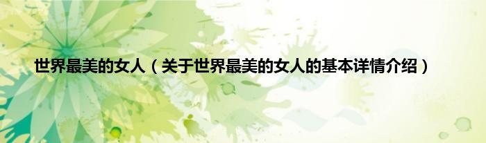 本文关于世界最美的女人的基本详情介绍就讲解完毕,希望对大家有所帮助。