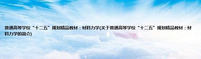 大家好,普通高等学校“十二五”规划精品教材:材料力学,关于普通高等学校“十二五”规划精品教材:材料力学的简介很多人还不知道,现在让我们一起来看看吧!